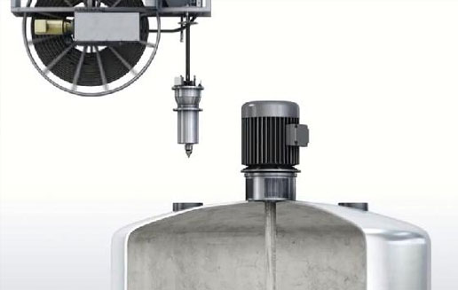 釜罐清洗的核心內(nèi)容,是采用專用的執(zhí)行機構(gòu),將清洗頭送入罐內(nèi)的各清洗點位進行清洗。針對具有攪拌槳的容器進行清洗時,可以利用攪拌槳,設置固定清洗頭。并通過人工轉(zhuǎn)動攪拌槳驅(qū)動電機的扇葉,帶動攪拌槳緩慢轉(zhuǎn)動,實現(xiàn)半自動清洗作業(yè),攪拌槳每旋轉(zhuǎn)360°后,需要反向旋轉(zhuǎn)360°,避免高壓軟管在容器內(nèi)纏繞扭結(jié)。