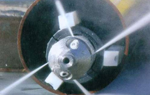 對(duì)于一些復(fù)雜管路的清洗是工業(yè)清洗中一個(gè)重要的領(lǐng)域。在這些復(fù)雜管路中,其中沉積的污垢比較牢固,使水射流能量分散,打擊力下降。另外,管路過(guò)長(zhǎng)或彎頭過(guò)多時(shí)噴頭旋轉(zhuǎn)和進(jìn)給速度難以保證。