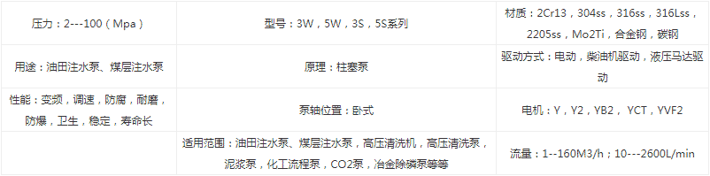 適用范圍: 油田及礦場注水泵、超高壓泵、噴射泵,除鱗泵、高壓清洗泵,加濕泵,噴霧泵,流程泵、稠漿泵、泥漿泵、液態(tài)二氧化碳泵、洗滌劑料漿泵、化工泵、液壓泵、輸油泵,海水泵等專業(yè)用泵。 特 點: 該泵吸收國內(nèi)泵業(yè)之精華,設(shè)計先進(jìn)、結(jié)構(gòu)緊湊、體積小、泵效高、運行平穩(wěn)、安全可靠、操作簡便、產(chǎn)品制作精良、外形美觀。每個品種的泵都有安全調(diào)壓閥,泵壓可以任意調(diào)節(jié),并有油溫、壓力、自動保護(hù)。 結(jié)構(gòu)型式:固定式、移動式 泵體結(jié)構(gòu):臥式、立式 傳動型式:電機或柴油機,變速型式:皮帶、齒輪、電磁調(diào)速、變頻速、 主要零部件:機座(材料HT250);泵體(材料:316、1Cr18Ni9Ti、2Cr13、 碳鋼化鍍鎳-磷合金防腐層)經(jīng)熱處理,避免疲勞破裂;曲軸(材料:35CrMo、42CrMo)經(jīng)調(diào)質(zhì)硬氮化處理、強度大、硬度高、耐磨耐用;柱塞(材料:超性陶瓷、噴焊鎳合金Ni60耐磨耐腐層);盤根密封(采用進(jìn)口芳綸或碳素纖維)。 閥組型式:錐閥、平板閥、組合閥等。經(jīng)特殊處理,耐磨耐用。